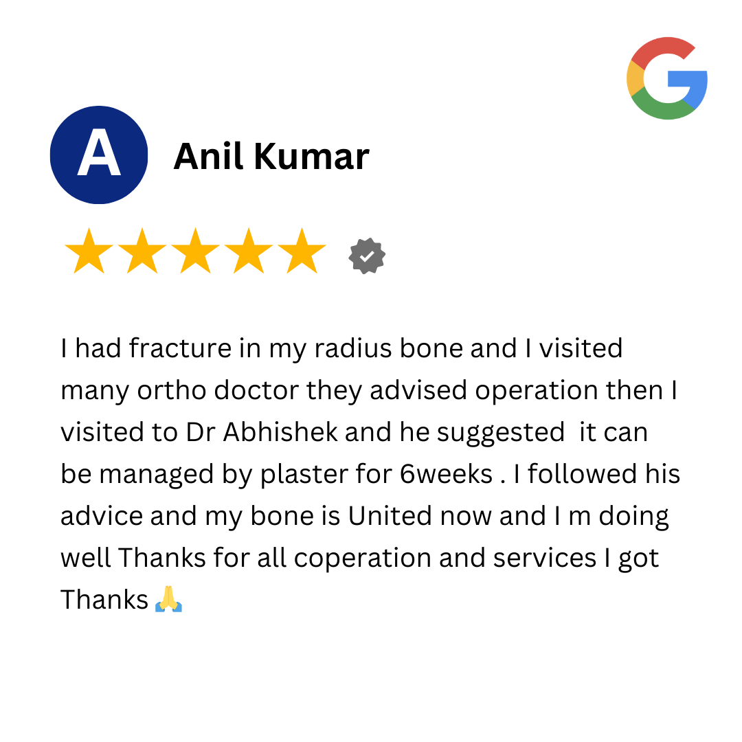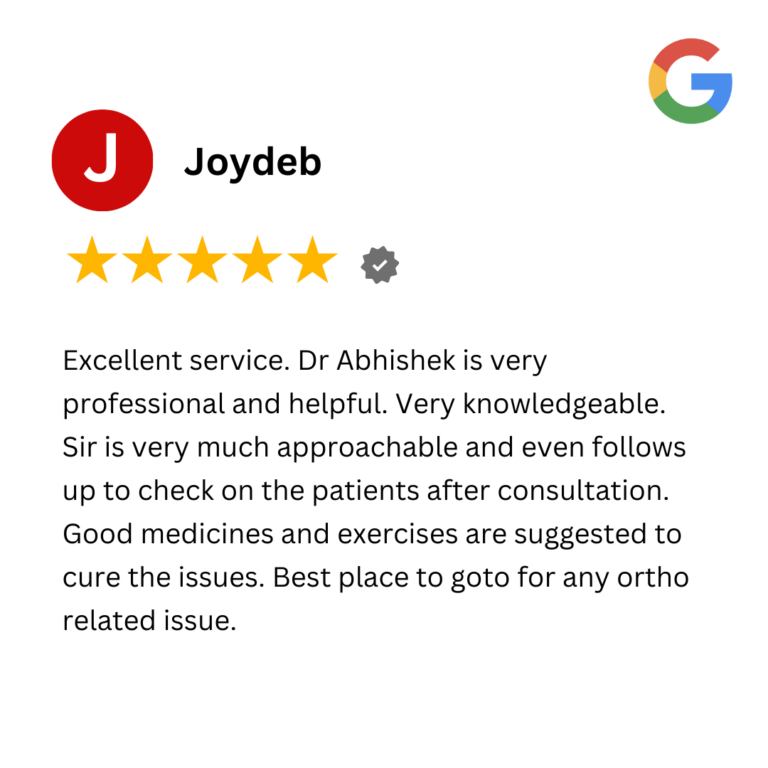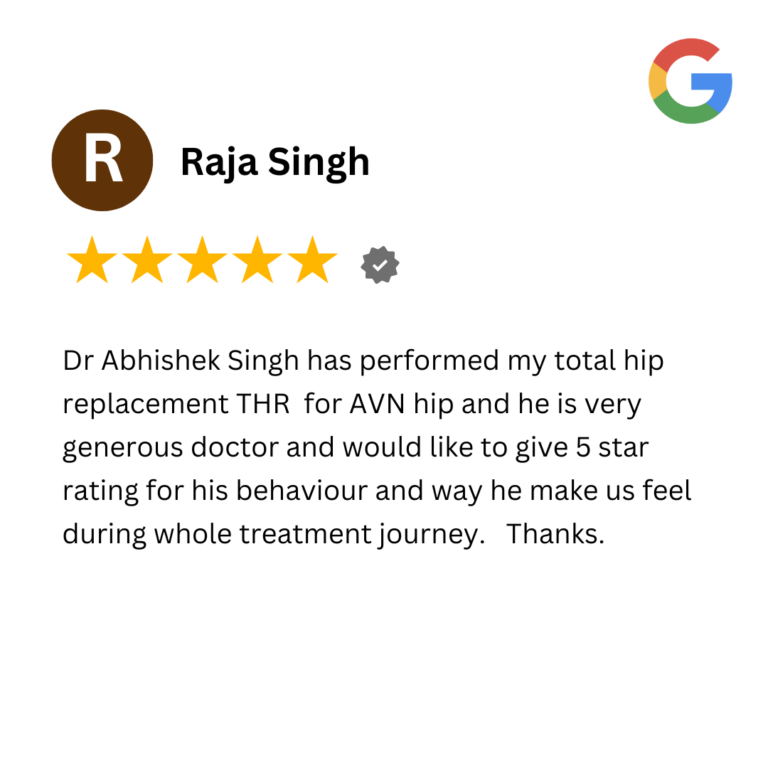 At the heart of Dr. Abhishek Singh’s practice is a commitment to enhancing quality of life. Hear directly from our patients as they share their journeys to better mobility and wellness. From transformative joint care to advanced orthopedic treatments, these testimonials highlight the expertise, compassionate care, and innovative techniques that define Dr. Singh’s approach.